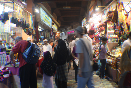 Lepas asar aku pun telifon Pak Arab yang hantar aku tadi, sekejap je teksi tu dah sampai. Dia pun hantar aku ke Souk Muttrah. Baru rasa pasar arab..banyak kain baju, cenderamata, peralatan, minyak wangi dan makanan tradisional arab...Di pasar ni masih boleh tawar menawar, kalau rasa harga ok baru beli..Banyak kedai menjual barangan yang sama, bandingkan harga baru beli. Penjualnya taklah nampak nak paksa-paksa supaya beli, seperti di tempat-tempat lain..Ada juga yang berniaga ialah orang luar,seperti Pakistan dan India..Ada satu makanan tradisional di Oman kena beli iaitu halwa (manisan)..Sedap dan tahan lama. Aku pun pusing pasar Muttrah, luas juga..tak sempat habis pusing..beli sikit-sikit sebab kalau tenguk harga secara psikologinya kita akan banding dengan nilai duit Malaysia...akhirnya tak jadi beli. Bagus juga.....Jalan-jalan di Souk Muttrah sampai maghrib. Ramai juga pelancong luar, orang Eropah pun ramai jalan-jalan di Muttrah.