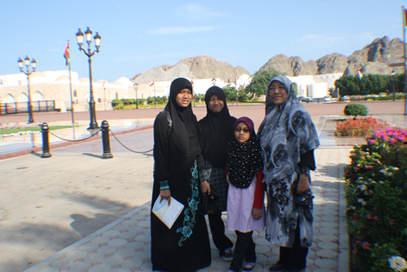 Lepas solat zohor baru aku bawa anak-anak aku berjalan. Bulan Disember di Oman rasanya tidak berapa panas..Telifon teksi, kemudian bincang-bincang harga...Aku bercadang nak jalan-jalan di Souk Muttrah...Teksi tu pun bawa kami ke Muttrah..pasar di sebuah bandar lama agak tradisional dan menjual barang-barang tradisional. Aku tenguk kanan kiri jalan ke Muttrah ditanam dengan pelbagai bunga yang berwarna-warni. Sebahagian besar bunga-bunganya sama yang ada di Malaysia, Contohnya bunga kertas, bunga raya, bunga tahi ayam dan lain-lain. Tapi dijaga dengan baik... Nampak subur dan ceria sekali. Sedangkan asalnya adalah dari kawasan batu pejal dan pasir...tapi guna teknologi nak bagi pokok-pokok itu hidup. Subhanallah...Aku pun puji kecantikan bandar Muscat depan Pak Arab yang bawa teksi tu...Dia pun dengan bangga cerita tentang Oman..Sekejap cakap Inggeris sekejap cakap arab..aku pun belasah layan cakap arab...yang penting boleh faham sudah. Anak-anak aku tolong perbetul kalau Pak arab tu tak faham aku cakap arab...ha.ha. Sampai di Muttrah pasar tak buka lagi...Pak arab tu pun bawak aku ke satu kawasan pentadbiran di Muttrah. Ada istana Sultan Qabus, pejabat-pejabat kerajaan, masjid, kota lama...yang cantiknya ialah lanskap di sekitar kawasan itu..Aku dan anak-anak pun keluarkan DSLR dan snap pemandangan yang cantik-cantik itu.