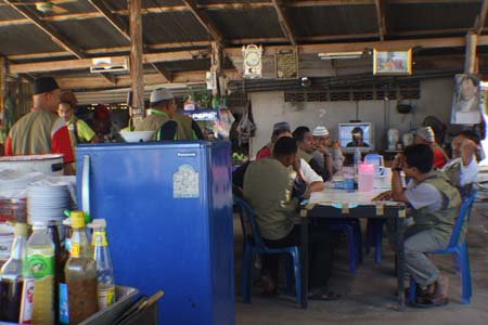 di sebuah gerai di tepi jalan. Selesai sarapan kami bersalam-salaman