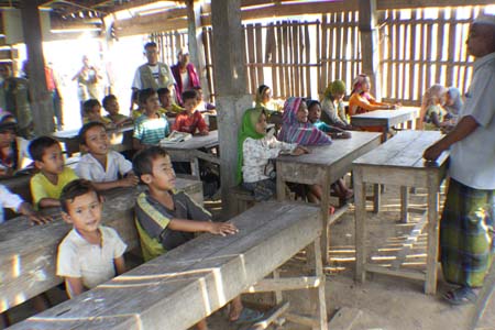tulisan jawi. Pelajar yang terdiri dari pelbagai usia duduk